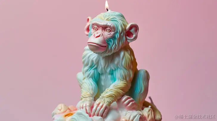 candle with a colorful chimpanzee sculpture on top, in the style of mark ryden, beeple, intricate surfaces, minimalistic canine sculptures, cristina mcallister, disney animation, light pink and white