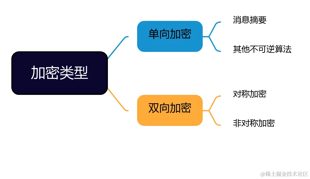 - 单向加密只是对信息进行摘要计算,无法通过算法反向生成明文。