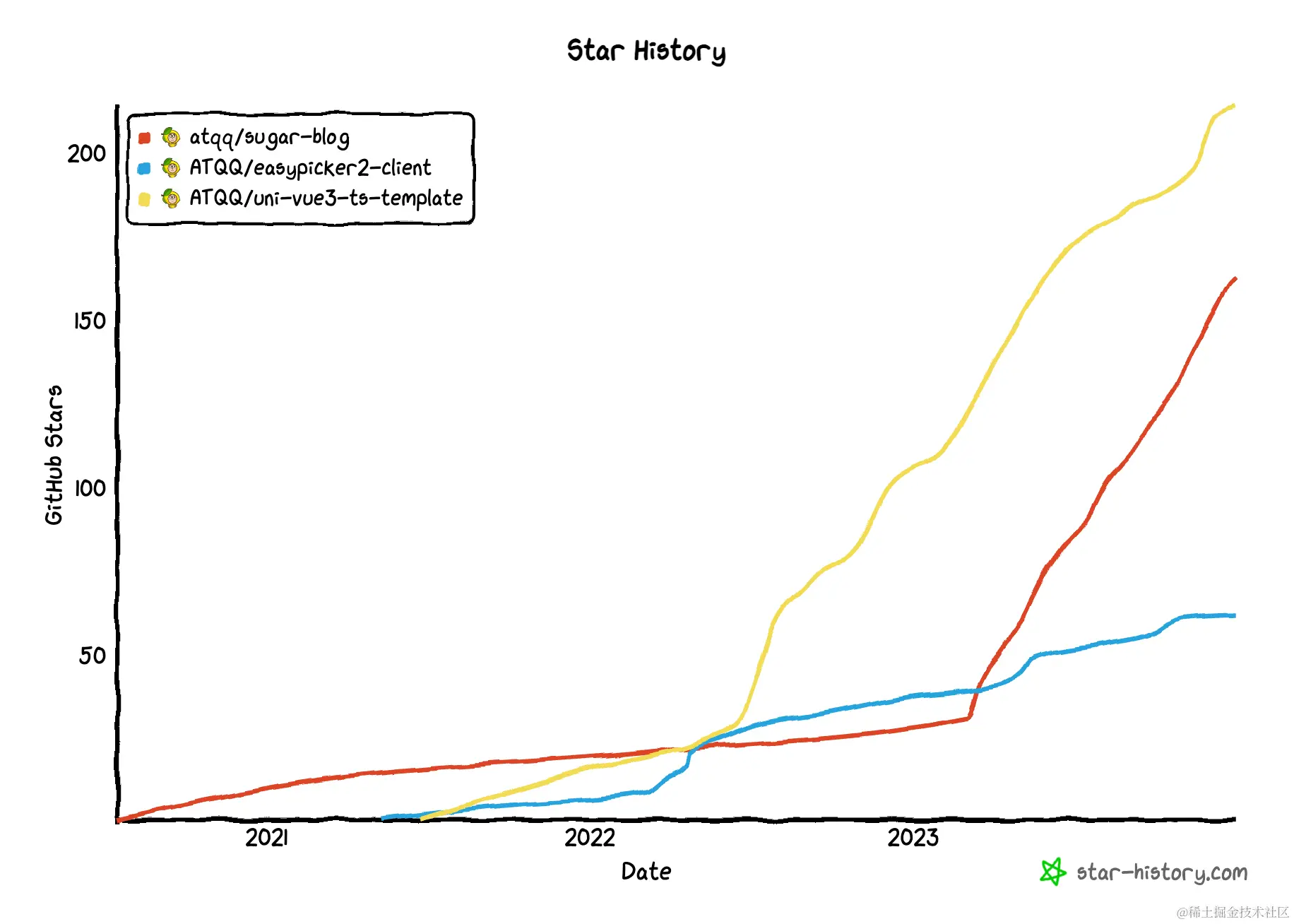 主要维护的几个项目 Star 情况如下(相比去年增长趋势更高)。