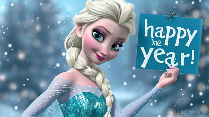 8. 冰雪女王艾莎手持“新年快乐”牌子