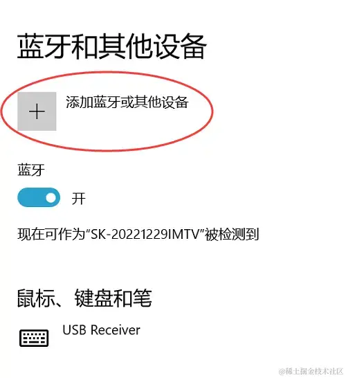 步骤3:选择【设备】,然后点击【添加蓝牙或其他设备】 ;