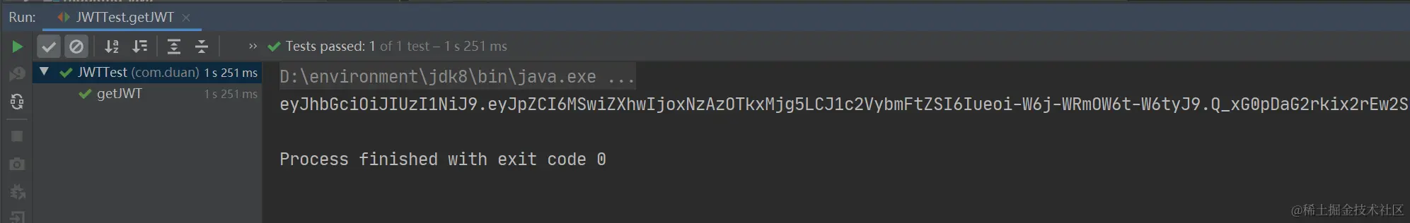 在 JWTTest 测试类中新建生成 JWT 方法 getJWT,代码如下