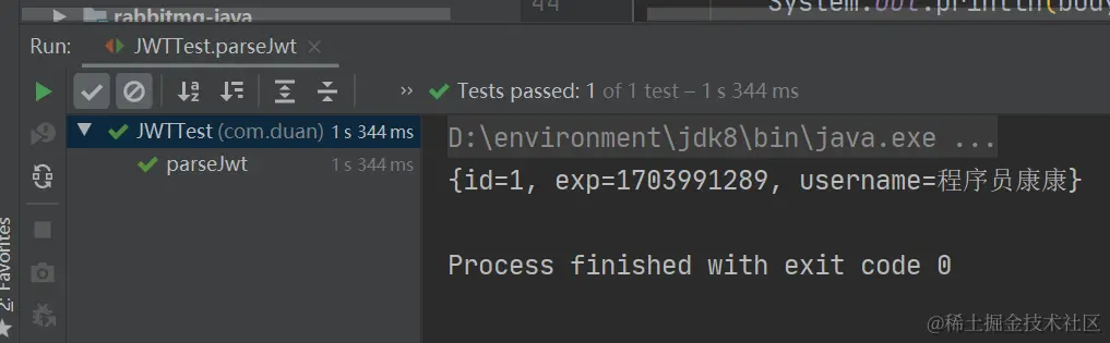 以上测试可以生成和解析 JWT,在项目实际使用时 JWT 一般都是以工具类的方式出现。下面我们把生成和解析 JWT 的方法封装成工具类