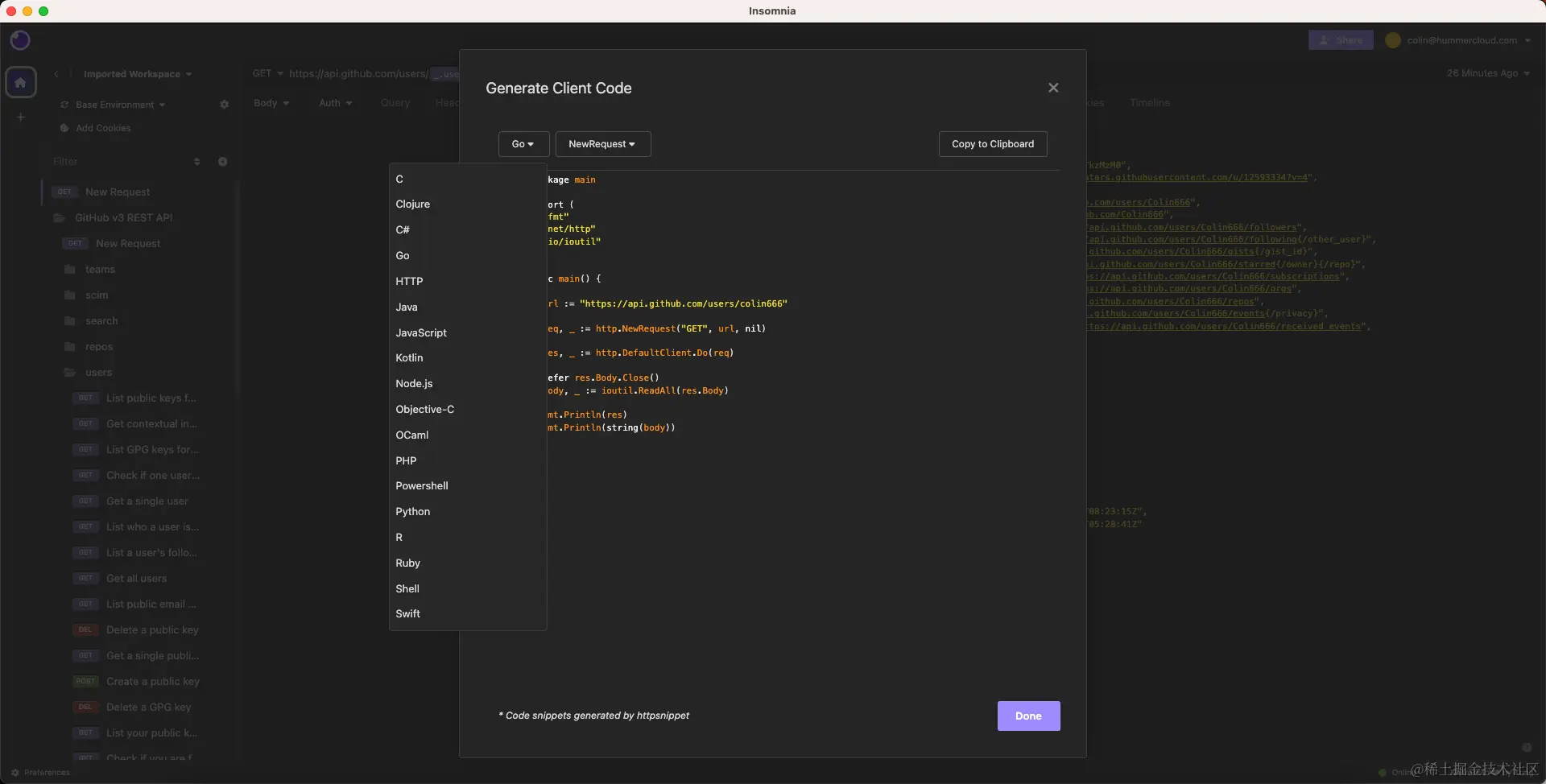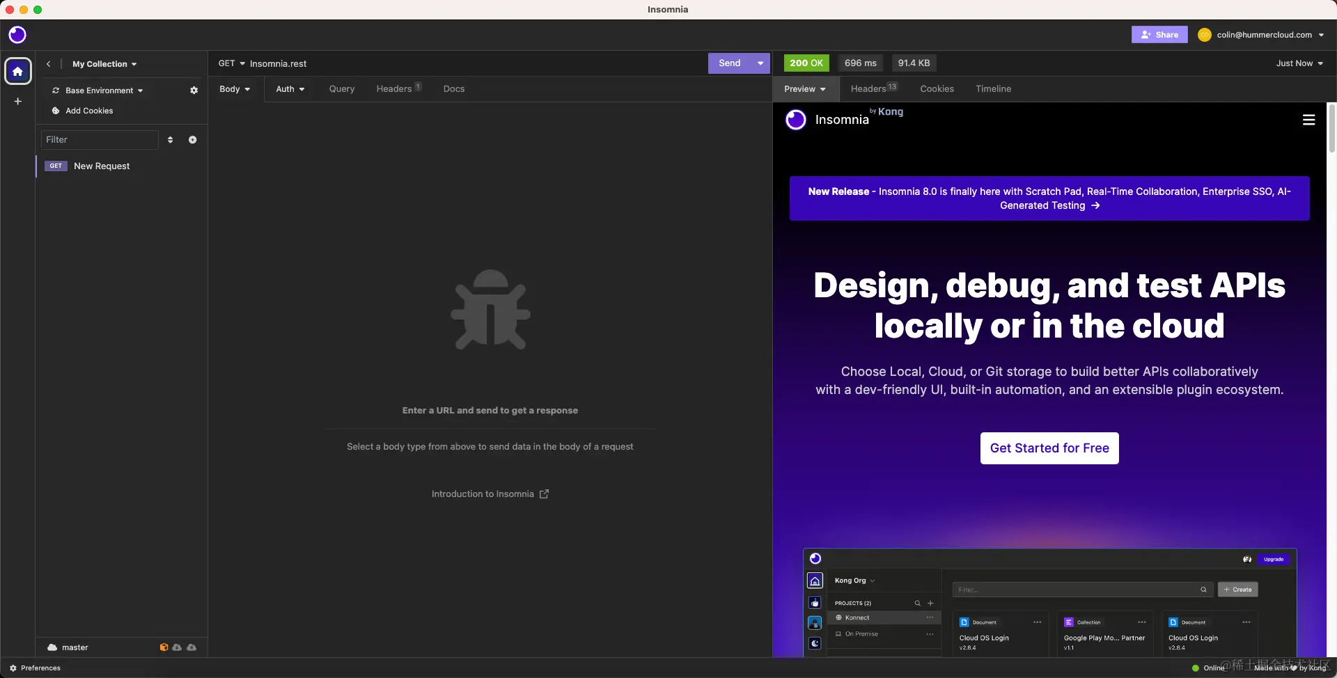 Insomnia相比于Postman更轻,虽然功能少,但是更专注于API相关的内容。