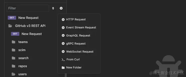 还可以创建多种类型的请求, GraphQL、REST、WebSockets、ESR、gRPC 等。