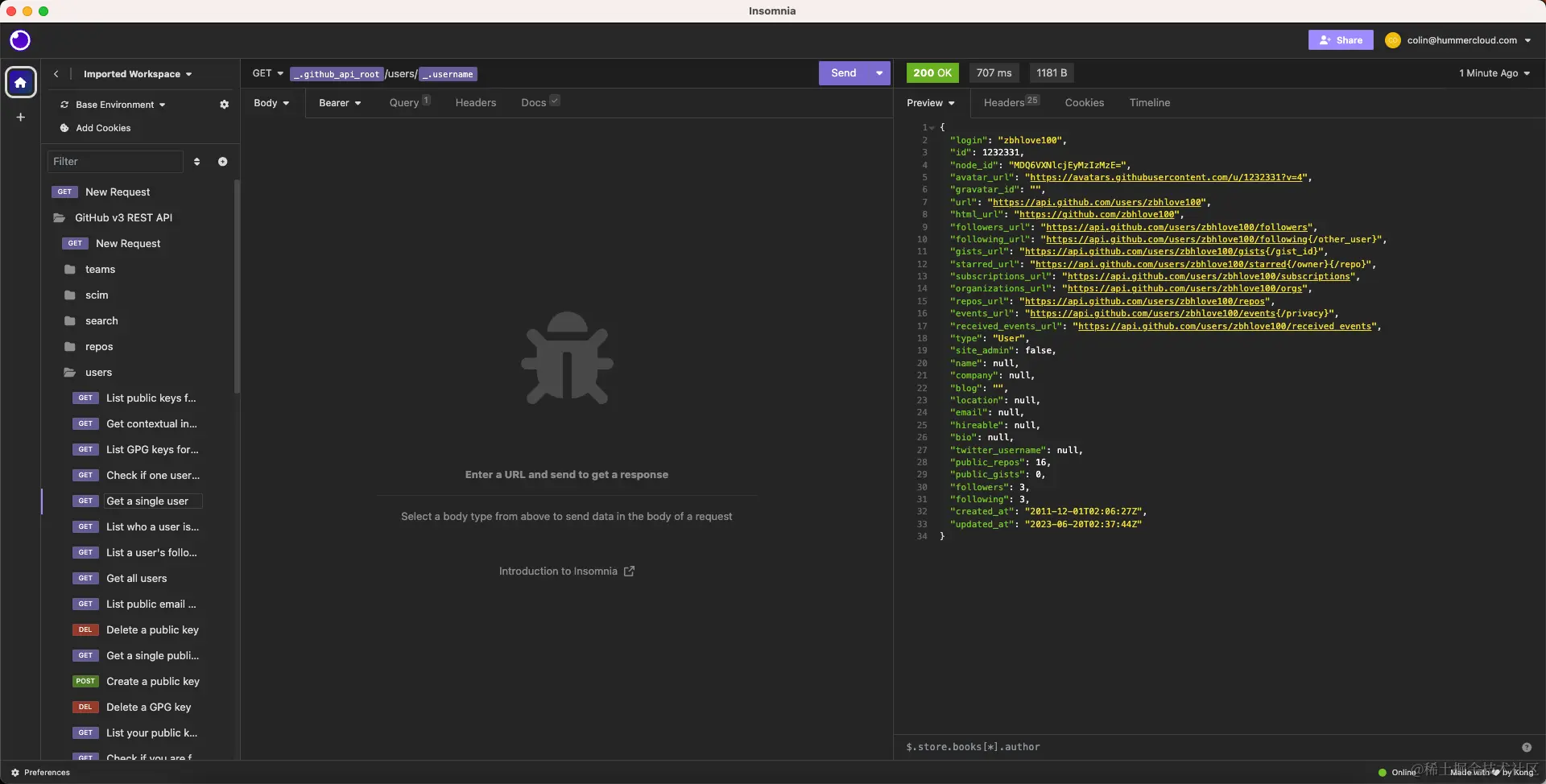 导入的API我们可以执行,来获取一下github上的用户信息。