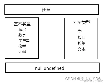 any 类型是可以无限制地表示任何 JavaScript 值的一种类型,所有类型都是单个顶级类型的子类型。