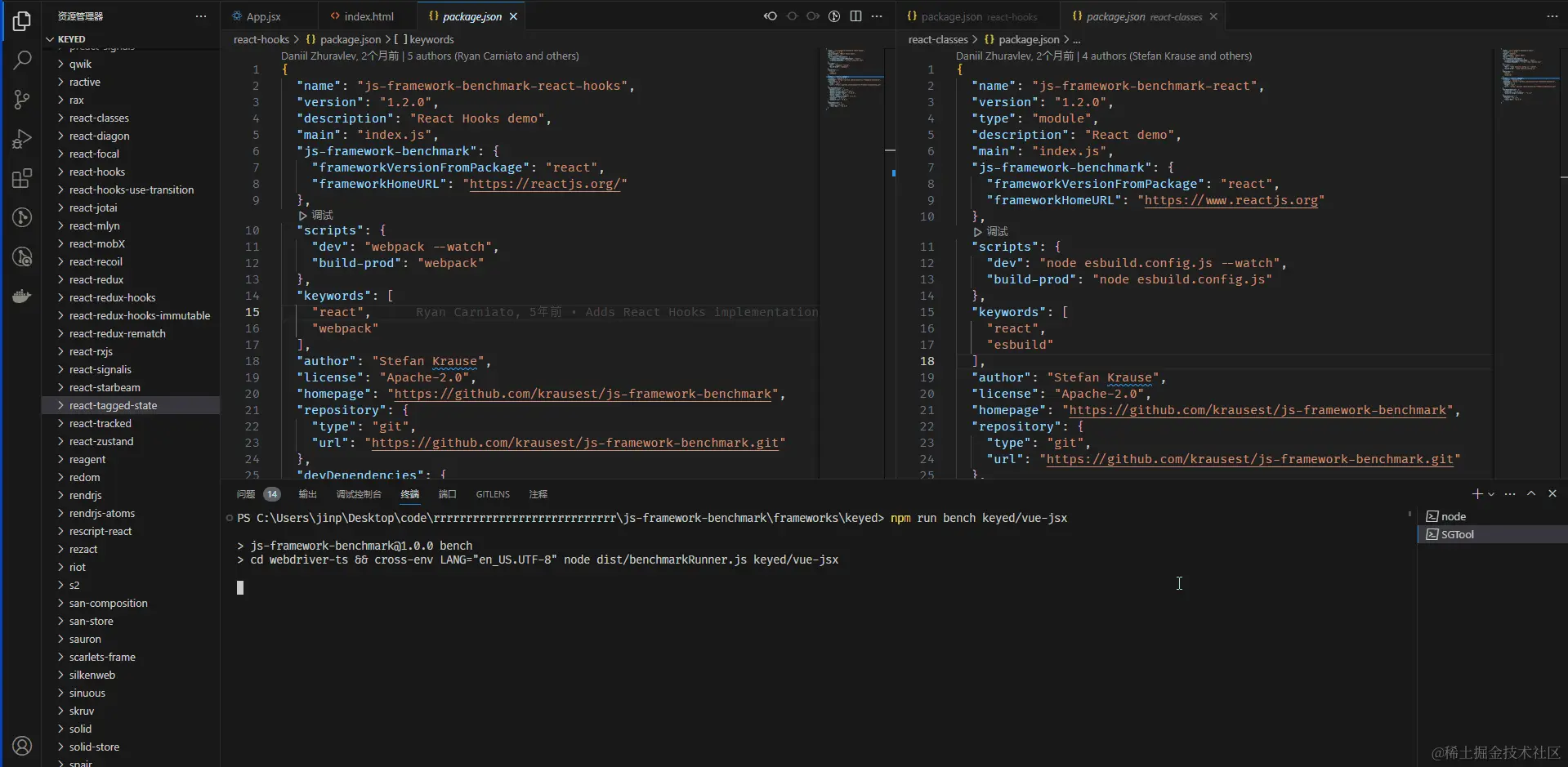 js-framework-benchmark 目前是没有 Vue JSX 的跑分结果的,为此我 clone 了项目进行了本地测试。