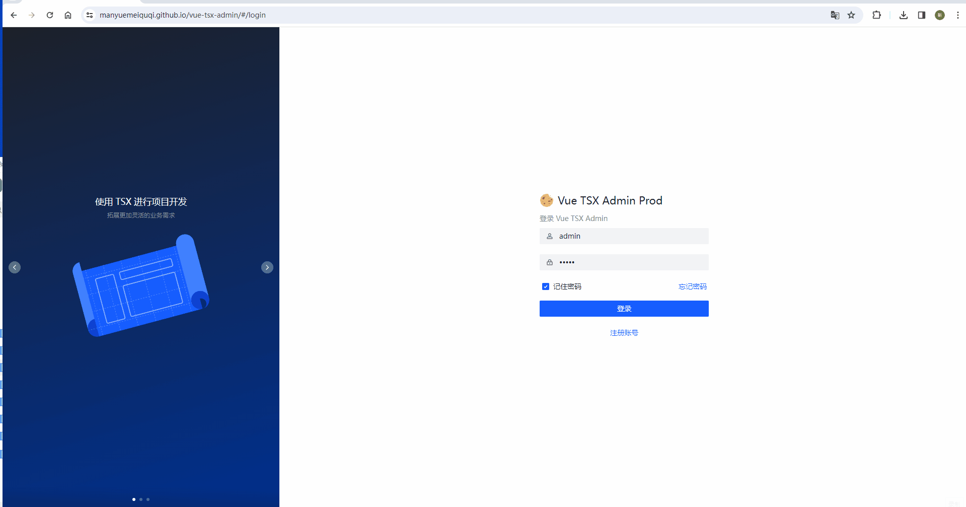 浏览器访问: http://localhost:5173/vue-tsx-admin/ 即可