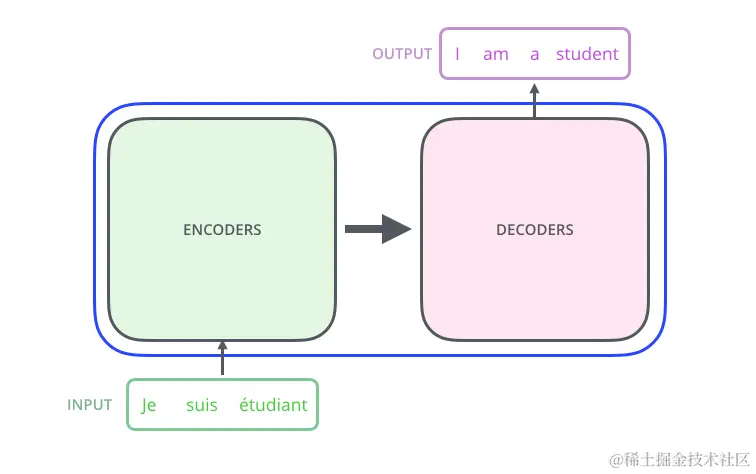 我们首先将该模型视为一个黑匣子。在机器翻译应用程序中,它将采用一种语言的句子,并以另一种语言输出其翻译。
