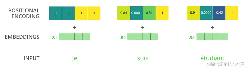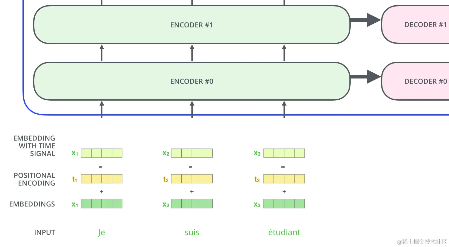为了解决这个问题,转换器向每个输入嵌入添加一个向量。这些向量遵循模型学习的特定模式,这有助于确定每个单词的位置,或序列中不同单词之间的距离。这里的直觉是,一旦嵌入向量被投影到 Q/K/V 向量中以及在点积注意力期间,将这些值添加到嵌入中可以提供嵌入向量之间有意义的距离。