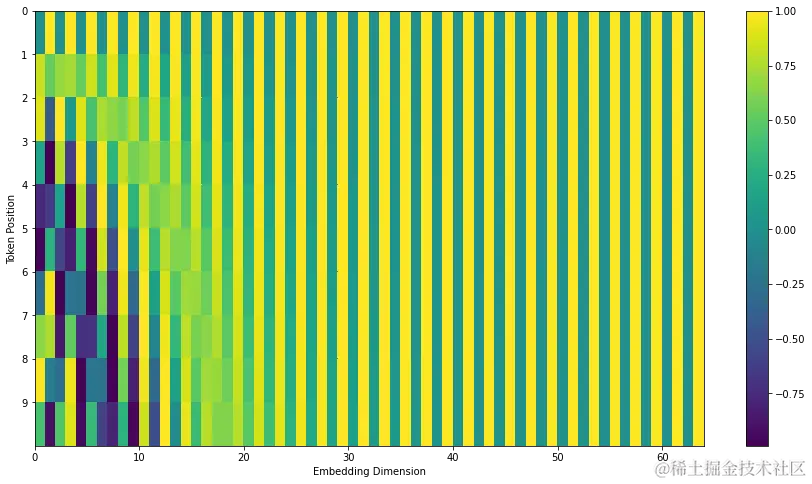 下图中,每一行对应一个向量的位置编码。因此,第一行将是我们添加到输入序列中第一个单词的嵌入中的向量。每行包含 512 个值 - 每个值都在 1 到 -1 之间。我们对它们进行了颜色编码,以便图案可见。