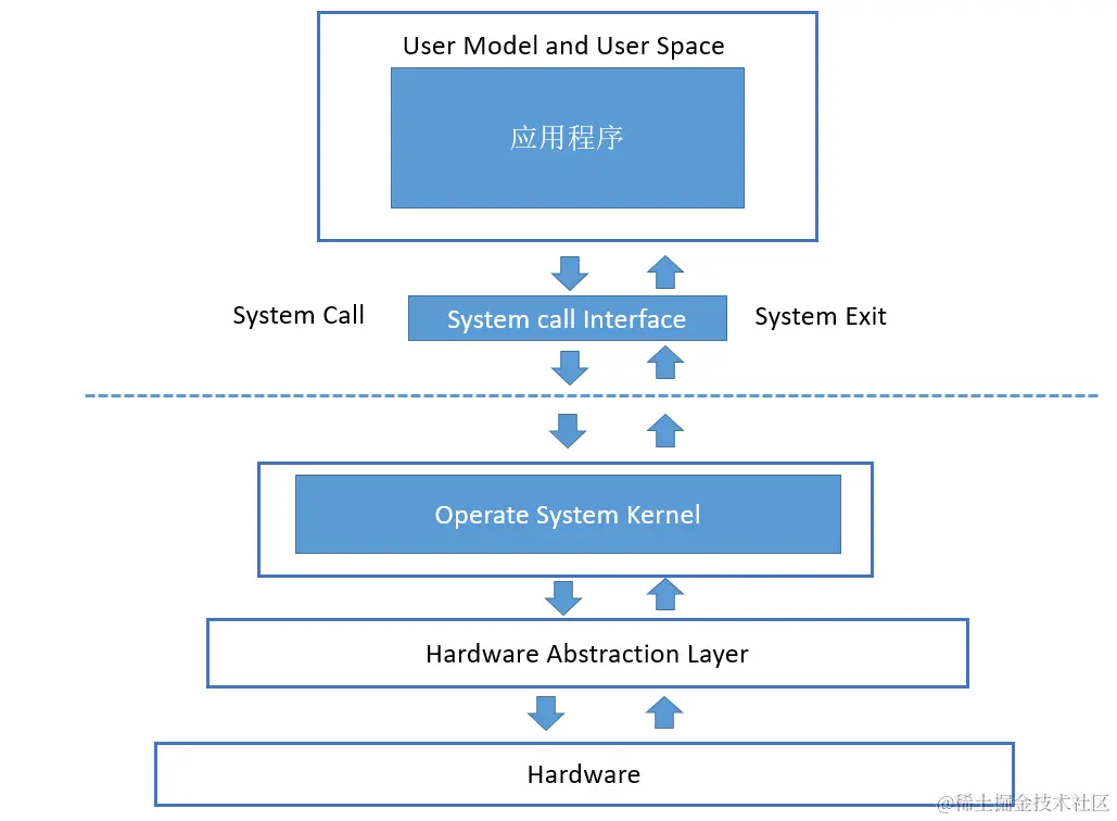 与之相对的两个概念是内核模式(Kernel mode,有资料也称为System Model 系统模式),是Linux中CPU运行模式之一。另一种是用户模式(user model),是用户程序的非特权模式,也就是内核以外的所有操作模式。当CPU运行在内核模式下面,默认运行的是受信任的程序,因此它可以执行任何指令和访问任何内存位置。内核(操作系统的核心,对系统中发生的一切拥有完全的控制权)是被信任的软件,其他程序不受信任,因此所用的用户进程都必须使用系统调用来请求内核执行特权指令,比如创建进程、I/O操作。