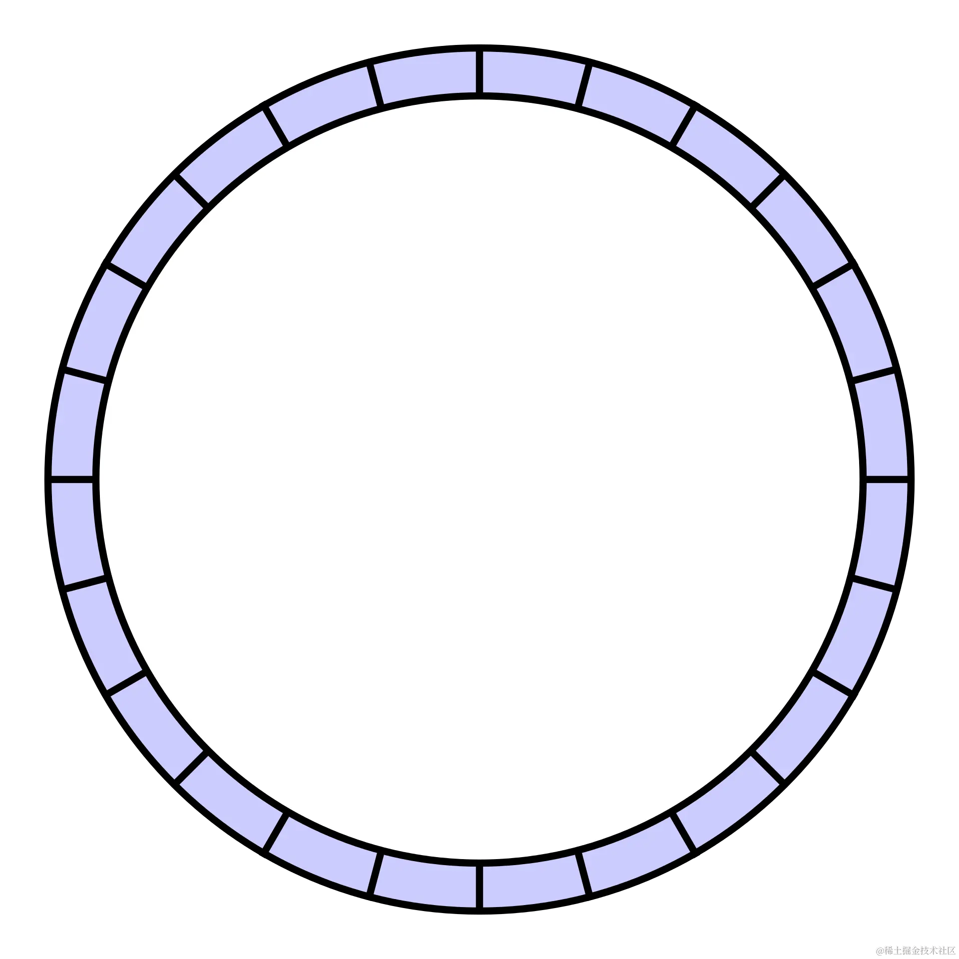 圆形缓冲区(circular buffer),也称作圆形队列(circular queue),循环缓冲区(cyclic buffer),环形缓冲区(ring buffer),是一种用于表示一个固定尺寸、头尾相连的缓冲区的数据结构,适合缓存数据流。 — 维基百科