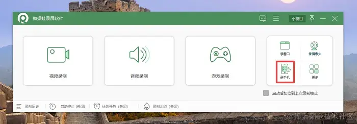 步骤1:打开数据蛙录屏软件,提前在官网下载并安装好,进入到用户页面,录制手机我们使用 “录手机” 模式。