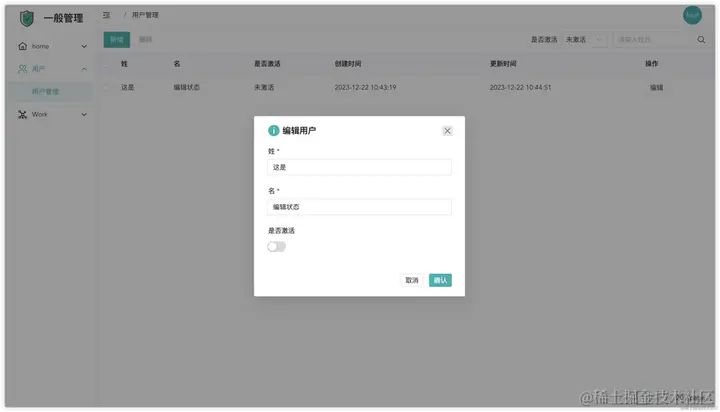 - 点击“改变状态”按钮,弹出确认框,改变 user 的激活状态