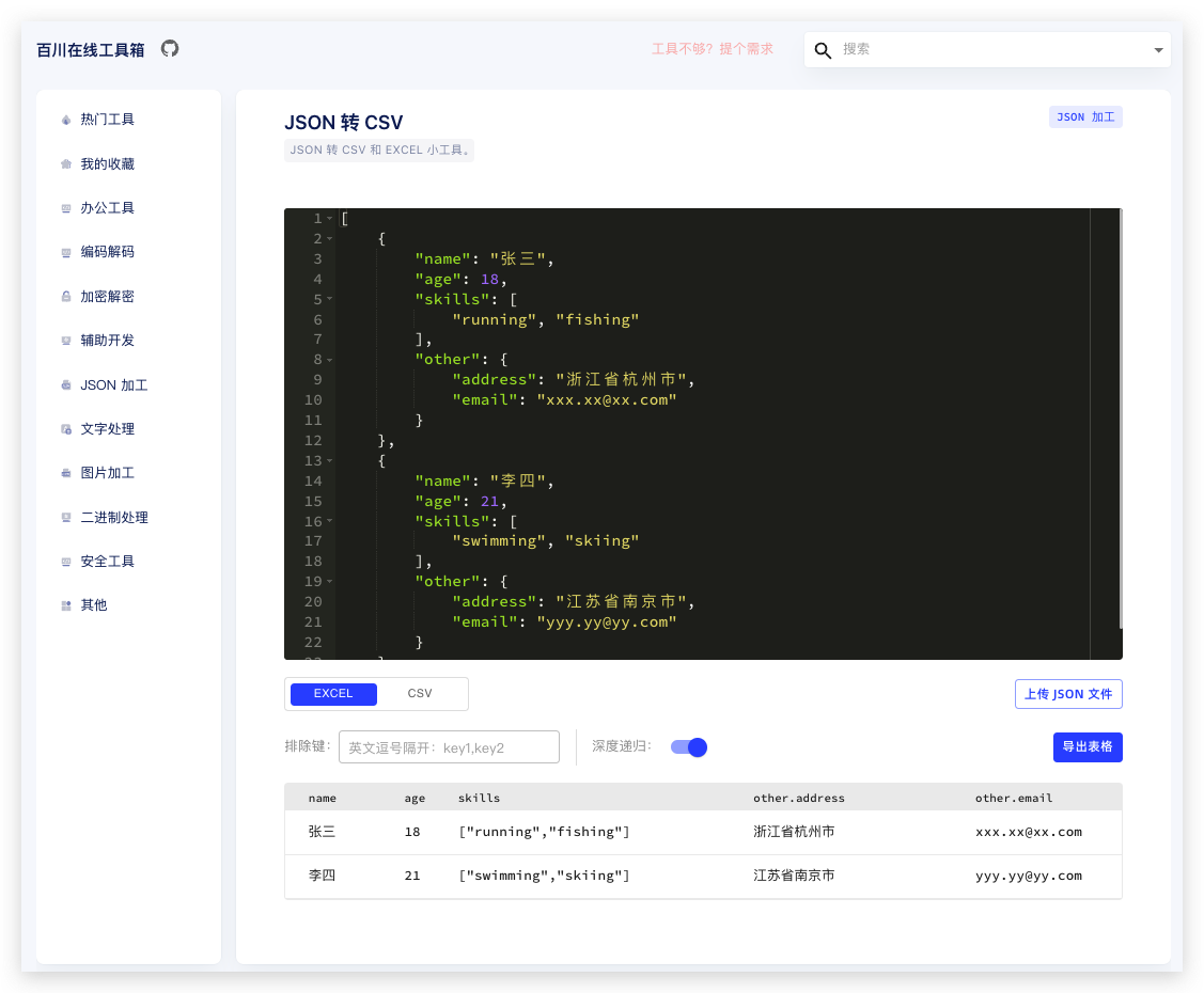 JSON 转 CSV/EXCEL