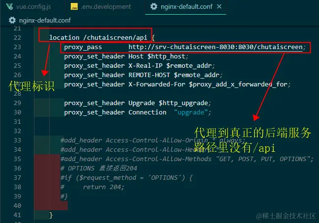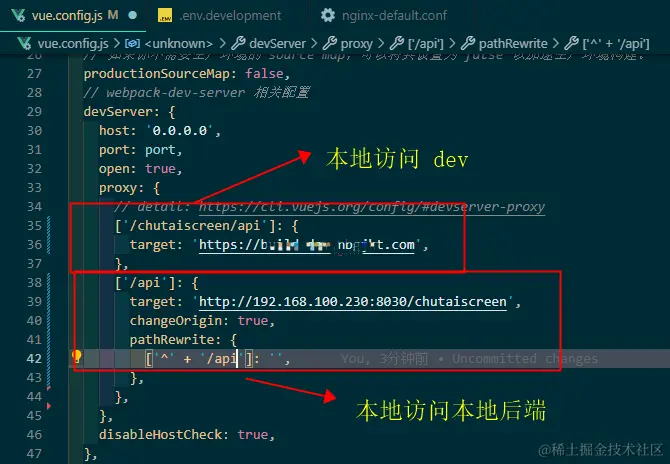 /api ,是 nginx 识别需要代理的后端接口服务标识,代理到真正的后端服务(一般接口地址没有/api)。而本地调试的时候是localhost访问本地的后端 http://192.168.100.230:8080/chutaiscreen,需要将接口地址里的/api去掉。