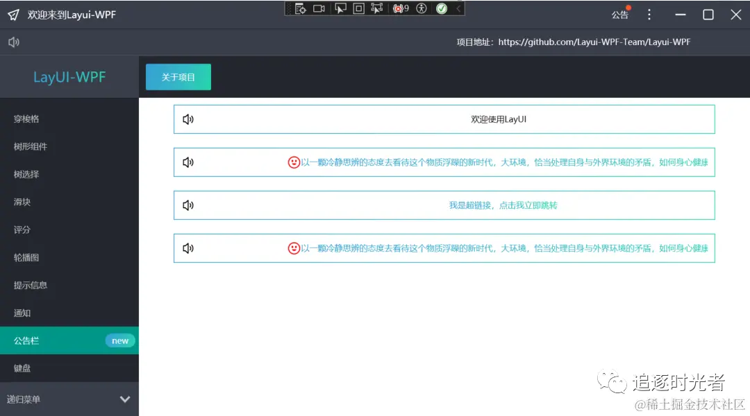 相信做.NET后端开发的很多小伙伴都用过Layui前端UI组件库,今天我们分享一个WPF版的Layui前端UI样式库:Layui-WPF。