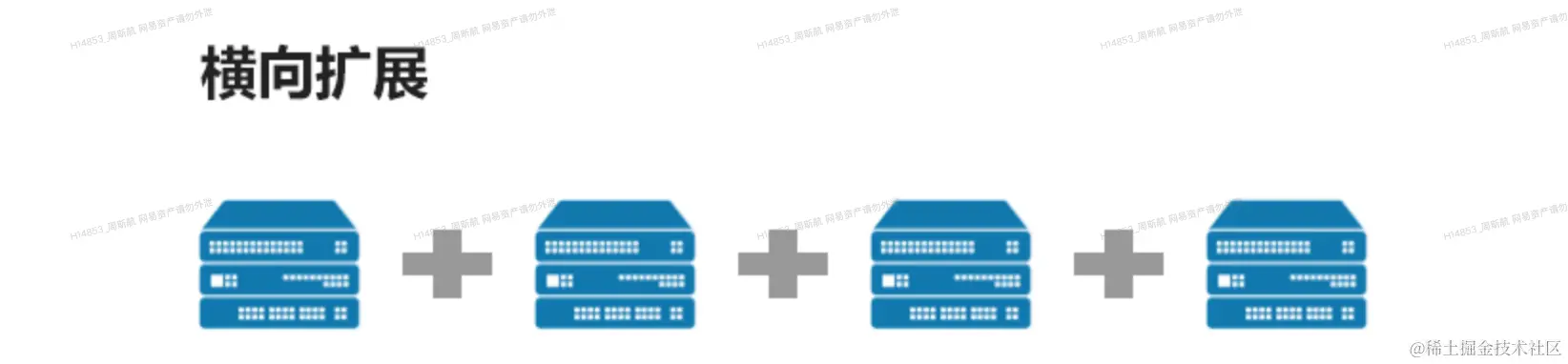 在热门歌曲或大型活动期间,此时缓存的容量足够存储需要缓存的数据,但缓存本身的性能可能会出现瓶颈(例如缓存上限qps是20w,此时系统压力达到30w),此时会新增多个缓存集群,每个集群缓存同样的数据内容,以提升缓存的性能,本方法也被称为 横向扩容(Scale Out) 。