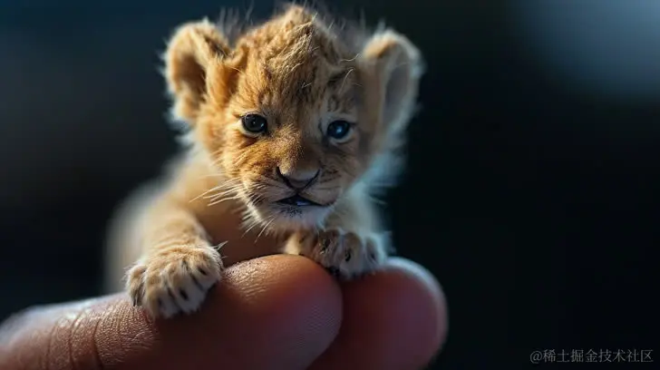 手指上的小狮子幼崽,呈移轴摄影风格,32k超高清,微型雕塑,极简主义,超高清图像,印度尼西亚艺术,深邃的比例