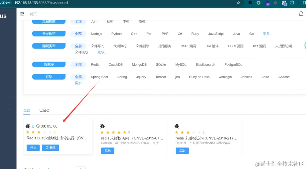 这里可以自己搭建一个redis环境,也可以用vulfocus搭建一个环境,可以两个都搭建,因为一些攻击手法,需要自己搭建的环境才能成功。