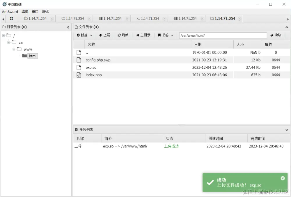 打开之后发现其泄露了redis的密码define("REDIS_PASS","you_cannot_guess_it");蚁剑插件连接上