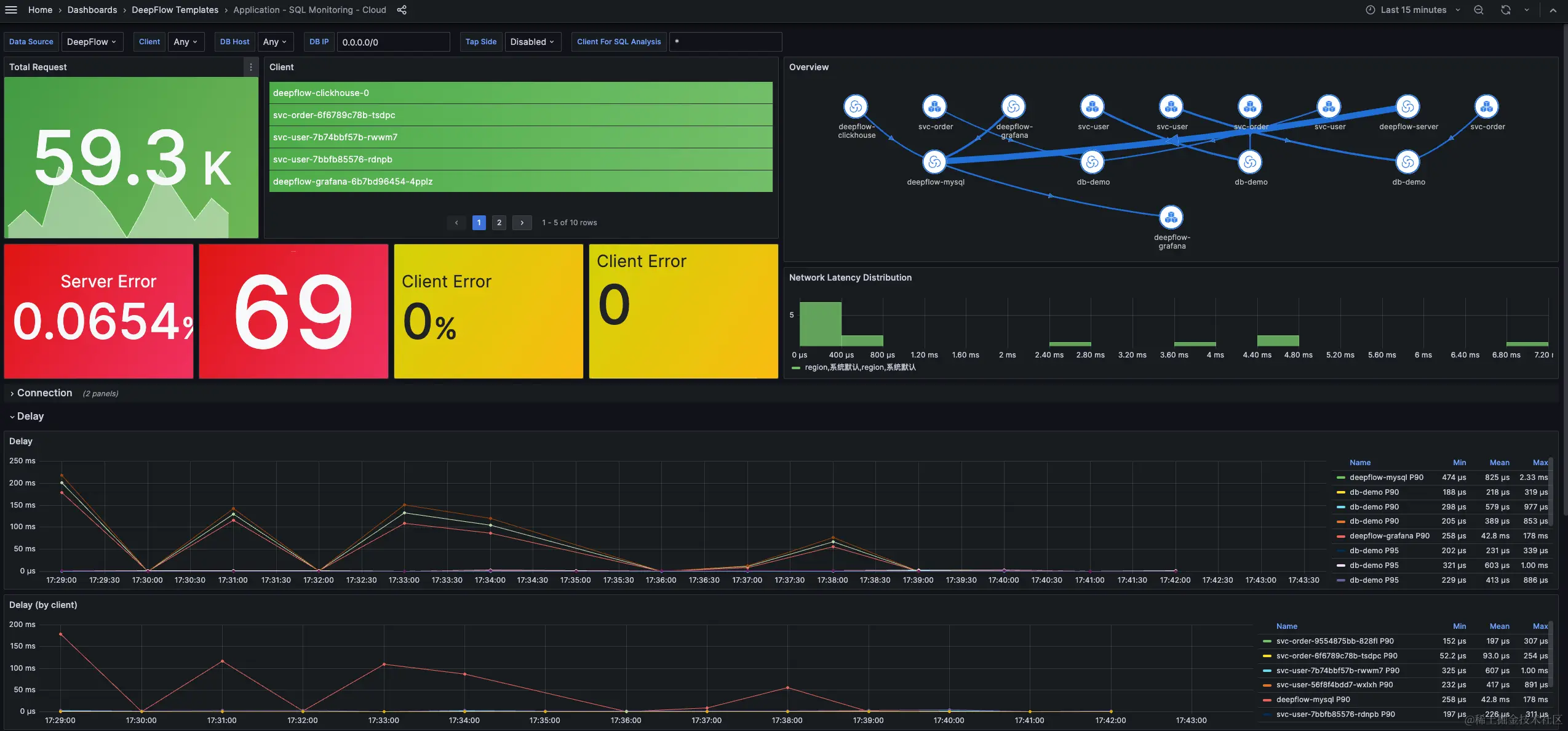 - 任意 Request 的分布式追踪:基于 eBPF 的零侵扰分布式追踪能力,支持任意语言的应用程序,并完整覆盖网关、服务网格、数据库、消息队列、DNS、网卡等各类基础设施。