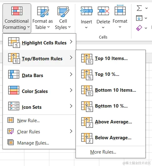 在工作表中,Excel 允许用户对单个或一系列单元格创建条件格式规则,使单元格、行、列或整个工作表中的数据自动应用不同的格式。条件格式可以帮助用户快速可视化和分析数据,突出显示满足特定条件的单元格或数值。
