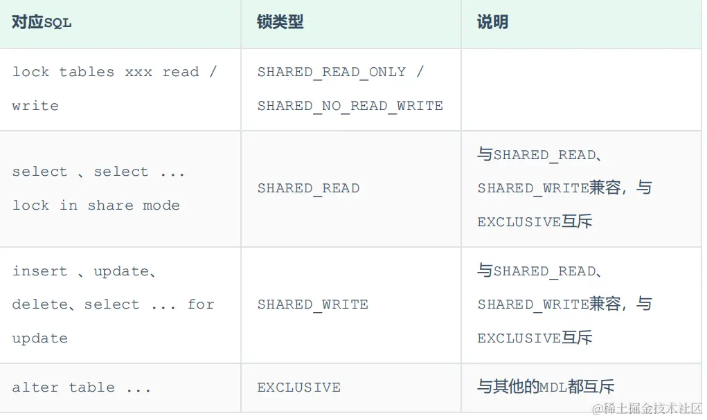 MDL锁主要作用是维护表元数据的数据一致性,在表上有活动事务的时候,不可以对元数据进行写入操作。