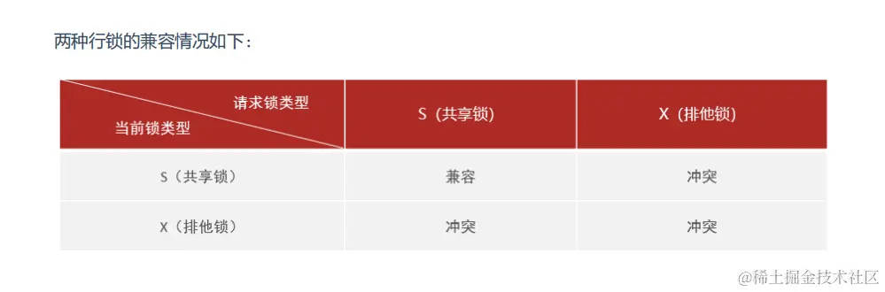 - 排他锁(X):允许获取排他锁的事务更新数据,阻止其他事务获得相同数据集的共享锁和排他