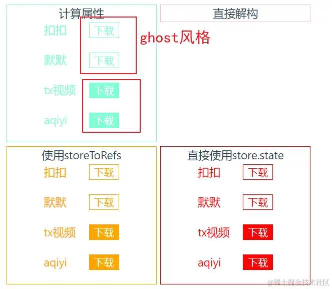 soft-button传参使用的是一个函数,多少有点不雅观,于是想给每个someList的item增加ghost和color属性,这样就可以直接使用item.ghost,item.color传参了