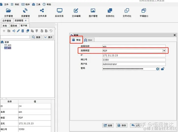 连接类型选择RDP;