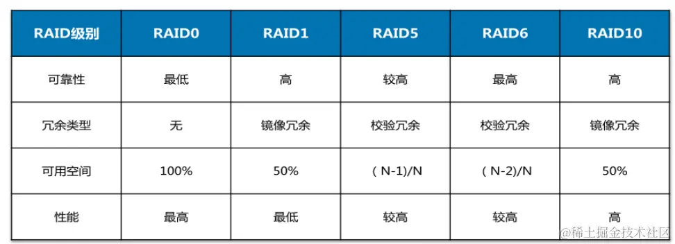 RAID 10:RAID 10是RAID 1和RAID 0的组合。它将多个硬盘分为两组,每组中的硬盘进行数据镜像,然后将数据分散存储在两组之间以提高性能。RAID 10提供了较高的数据可靠性和读写性能,但存储容量只能达到总容量的一半。