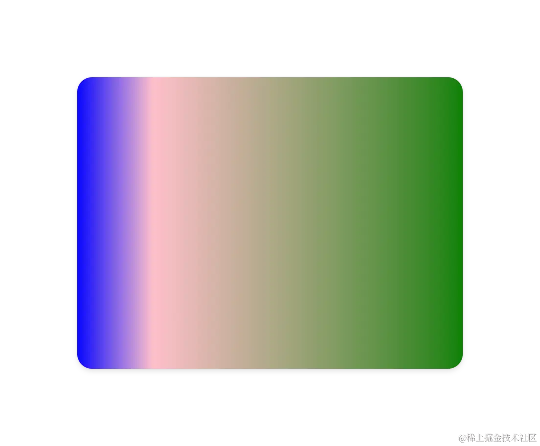 上面代码定义了线性渐变,色标以 90deg 方向(从左到右)前进,依次从蓝色、粉色、绿色渐变,并且定义了每个颜色的位置。