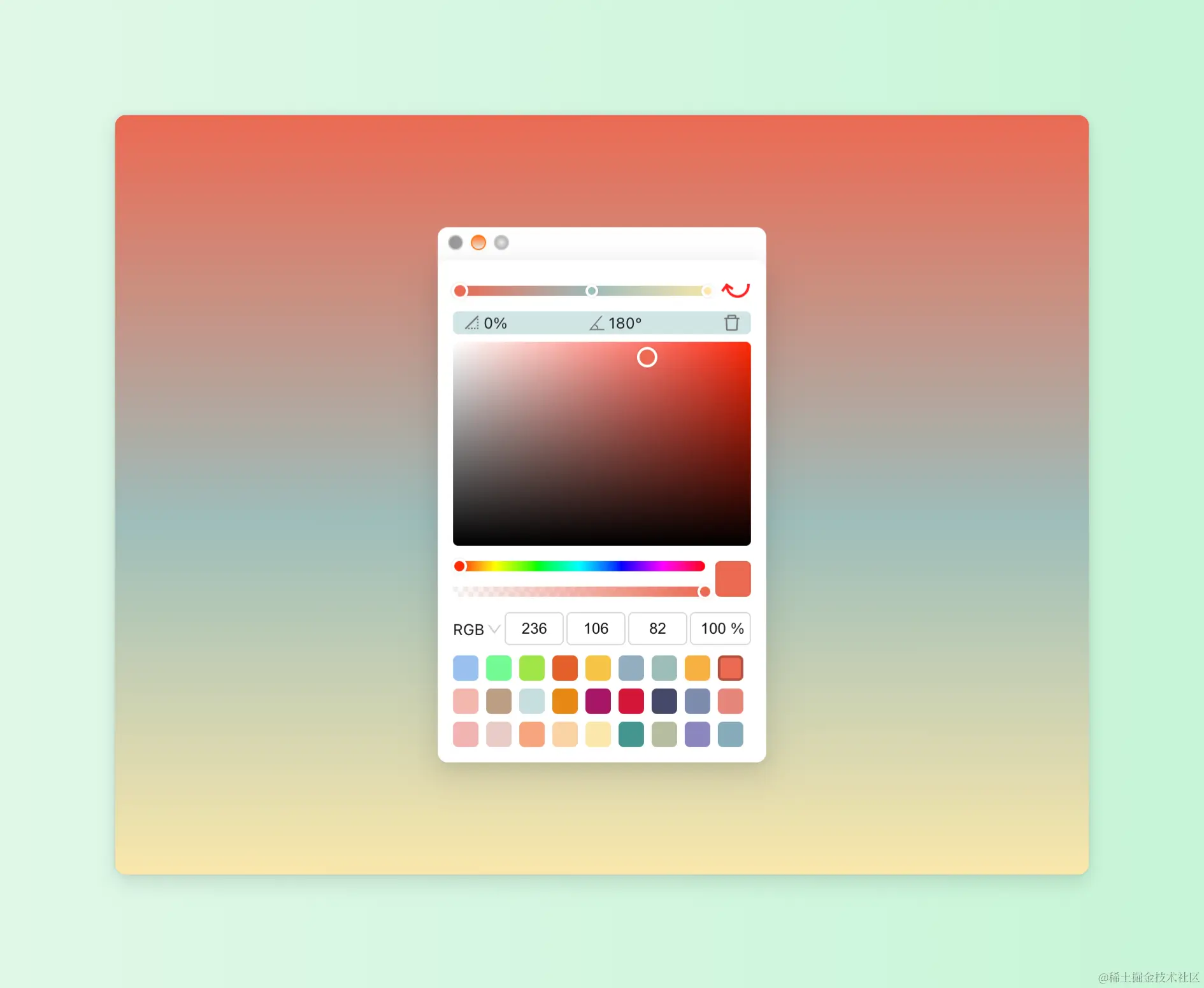 最后,推荐一下我开发的渐变色选择器,同时支持纯色和渐变色选择(支持色标、线性渐变角度配置),已经在 fabritor 上使用了!