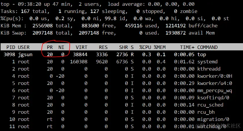 实时进程PR是负值,范围在-100和-2之间,其中最高优先级-100显示为RT。
