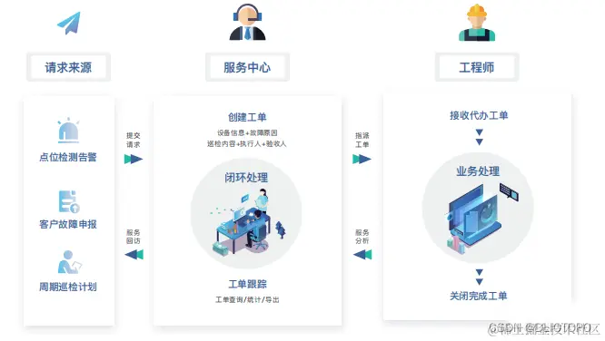 维修检修: 针对已经完成设备互联的设备,会根据设备告警与否自动生成告警工单。其余设备,提供了现场手动工单服务。还会提供周期性巡检工单服务,以保障维保工作更好的进行。