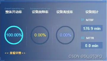 设备效率指 标: 支持用户通过自定义配置来对设备进行全方位监控,效率指标包括但不限于:开机率、作业率、待机率、故障率、关机率、离线率、冗余率、瓶颈率、MTBF、MTTR。