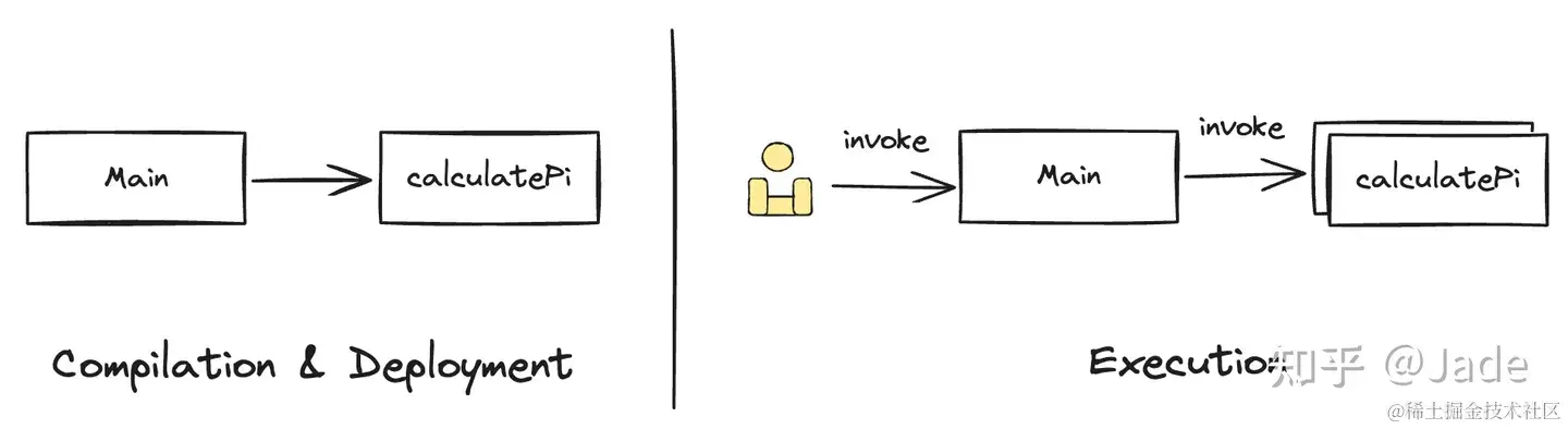 calculatePi,另一个对应整体代码去除calculatePi后的剩余代码(main 代码)。 - 然后将两个计算模块部署成两个 FaaS 资源实例。