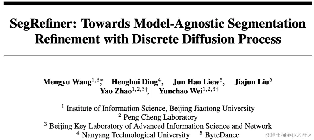 前言 尽管图像分割在过去得到了广泛研究和快速发展,但获得细节上非常准确的分割 mask 始终十分具有挑战性。因为达成高精度的分割既需要高级语义信息,也需要细粒度的纹理信息,这将导致较大的计算复杂性和内存使用。而对于分辨率达到2K甚至更高的图像,这一挑战尤为突出。由于直接预测高质量分割 mask 具有挑战性,因此一些研究开始集中于 refine 已有分割模型输出的粗糙 mask。为了实现高精度的图像分割,来自北京交大、南洋理工、字节跳动等的研究者们引入了一种基于扩散模型Diffusion去逐步提高mask质量的方法。