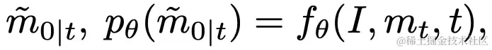 反向扩散过程用于模型推理,目标是将粗糙 mask 逐渐修正为精细 mask ,由于此时精细 mask 和状态转移概率未知,类似 DDPM 的做法,我们训练一个神经网络来预测精细 mask ,表示为: