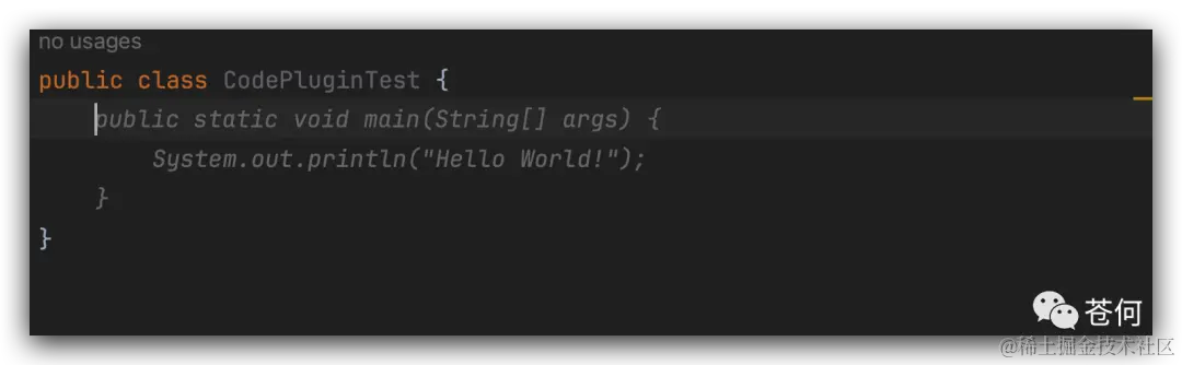 这个时候,我们把 GitHub Copilot 代码补全打开,其他插件代码补全全部关闭。可以看到 GitHub Copilot 直接就提示一个完整的 main 方法,并输出了一段默认语句,个人觉得在有些场景下是一种累赘。CodeFuse 是在进行换行的时候提示下一句话,我觉得更友好一些。
