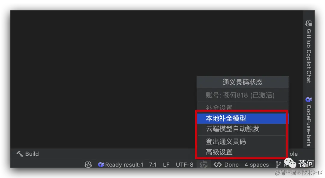 目前虽说CodeFuse 还处于内测阶段,但从测试效果来看,还是很惊艳的,特别是其侧边栏的代码 UI 风格和交互以及支持自定的配置比较友好。