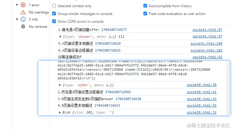 只要这上面6步都正常执行,B页面才能接收到A页面的视频流和音频流