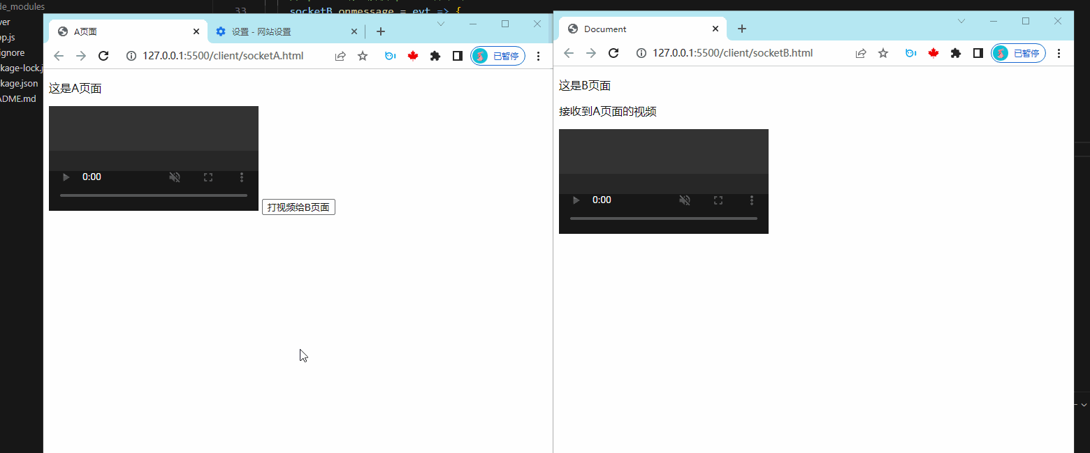 将接收到的视频流渲染到B页面的video标签中,这就能接受的A页面的视频流了.