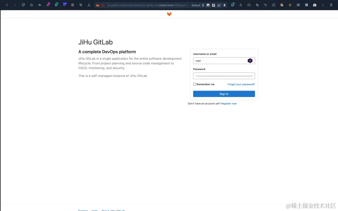 部署完成后,就可以通过设置好的域名访问极狐GitLab。