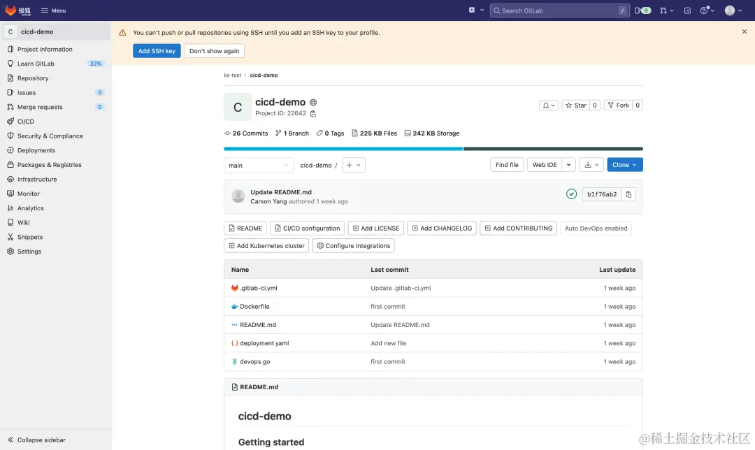 现在随便修改仓库中的文件(比如 README)来触发流水线。
