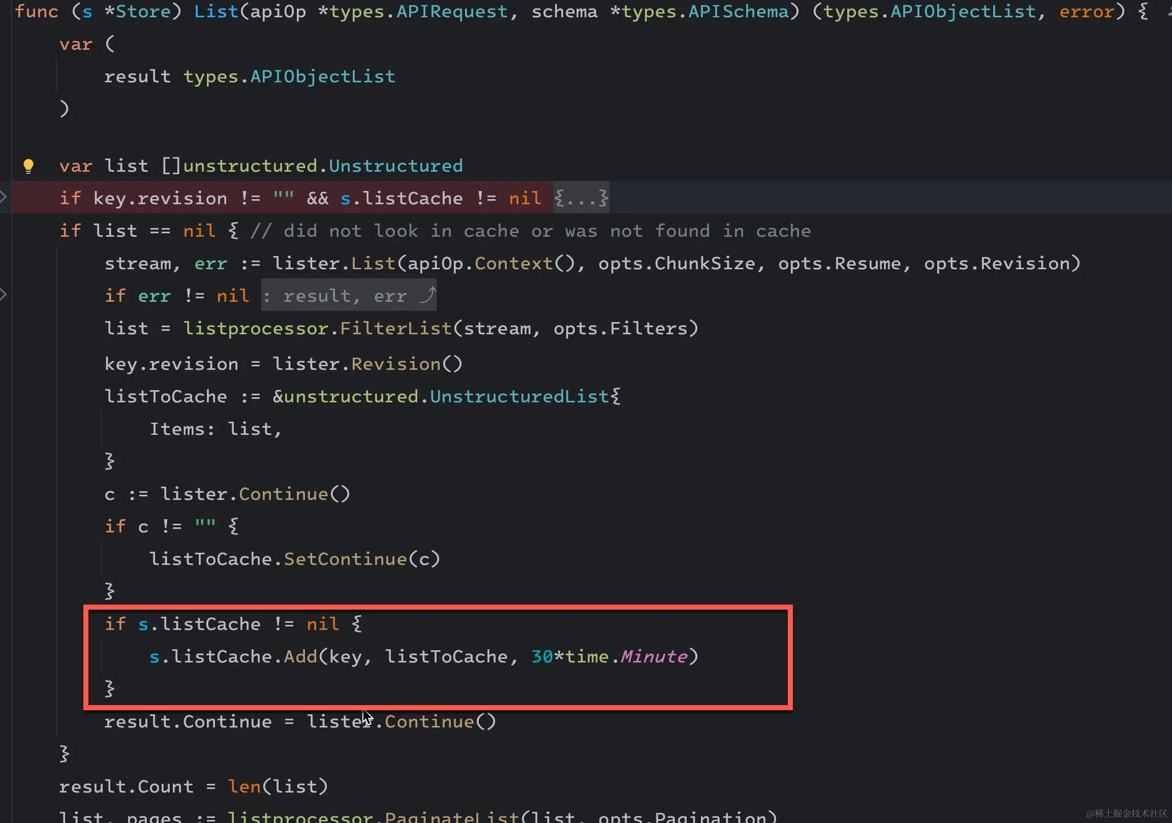 这个 listCache 是一个 LRU cache,看代码会把结果缓存 30 分钟。
